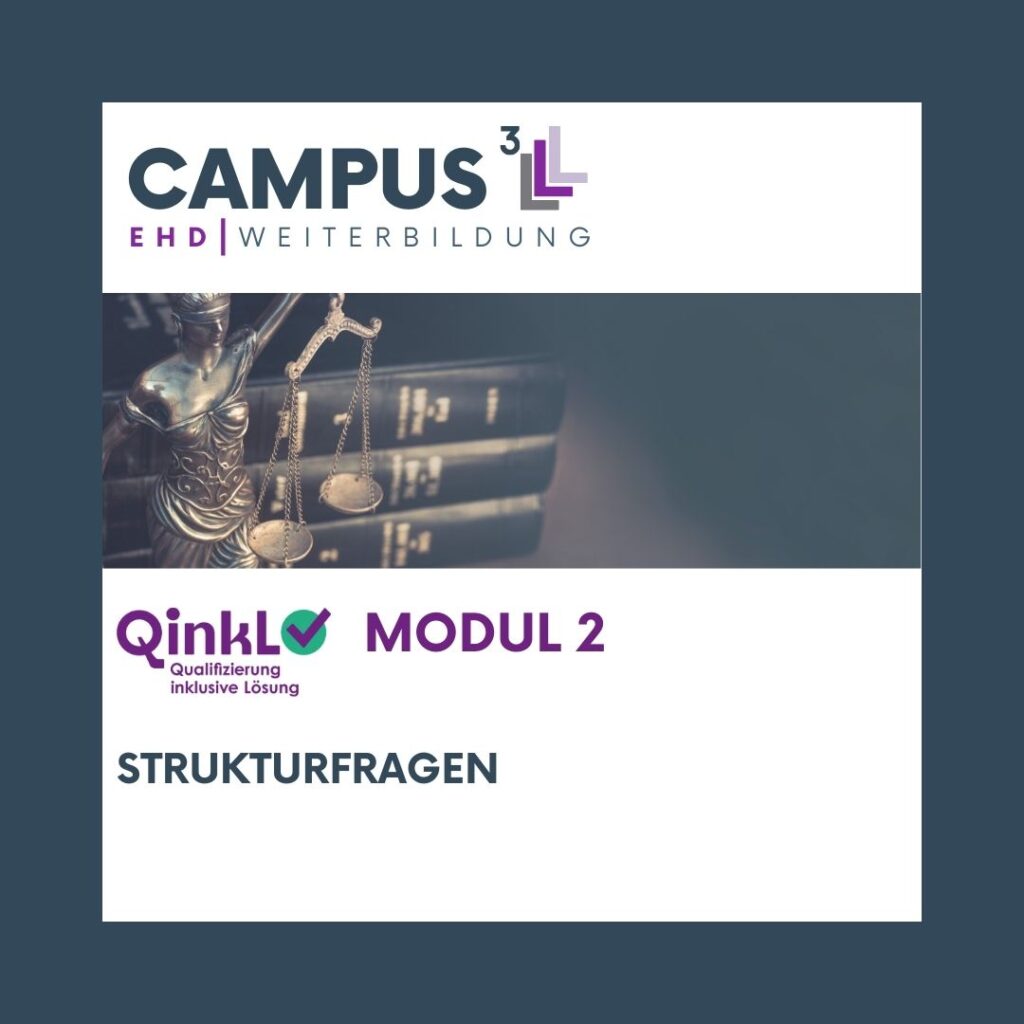 Die Weiterbildung QinkL umfasst drei Module innerhalb eines Jahres und greift zentrale fachliche, rechtliche und strukturelle Fragen der inklusiven Kinder- und Jugendhilfe auf. Sie verbindet sozial- und rechtswissenschaftliche Grundlagen mit praxisnahen Perspektiven auf inklusive Prozesse im Sozialraum.